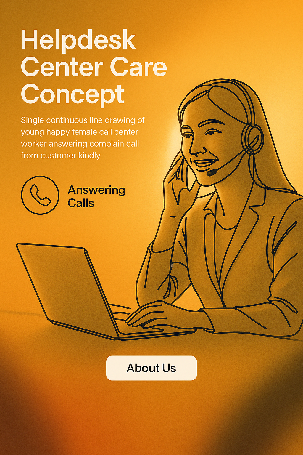 /Collection: /by davooda/Type: PNG/A minimalist line drawing of a female call center worker engaged in customer support, designed for use in customer service promotions or helpdesk materials.