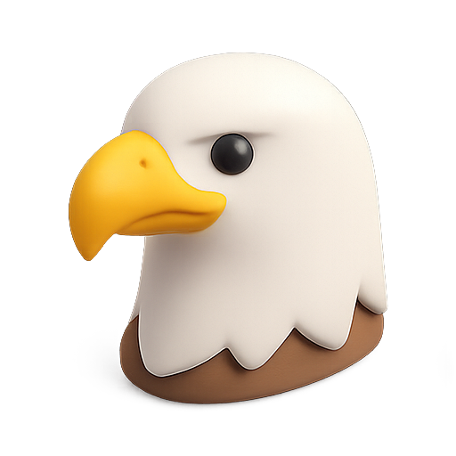 A whimsical 3D illustration of a cartoon eagle head, featuring soft shapes and a playful design, ideal for use in children's media or branding.