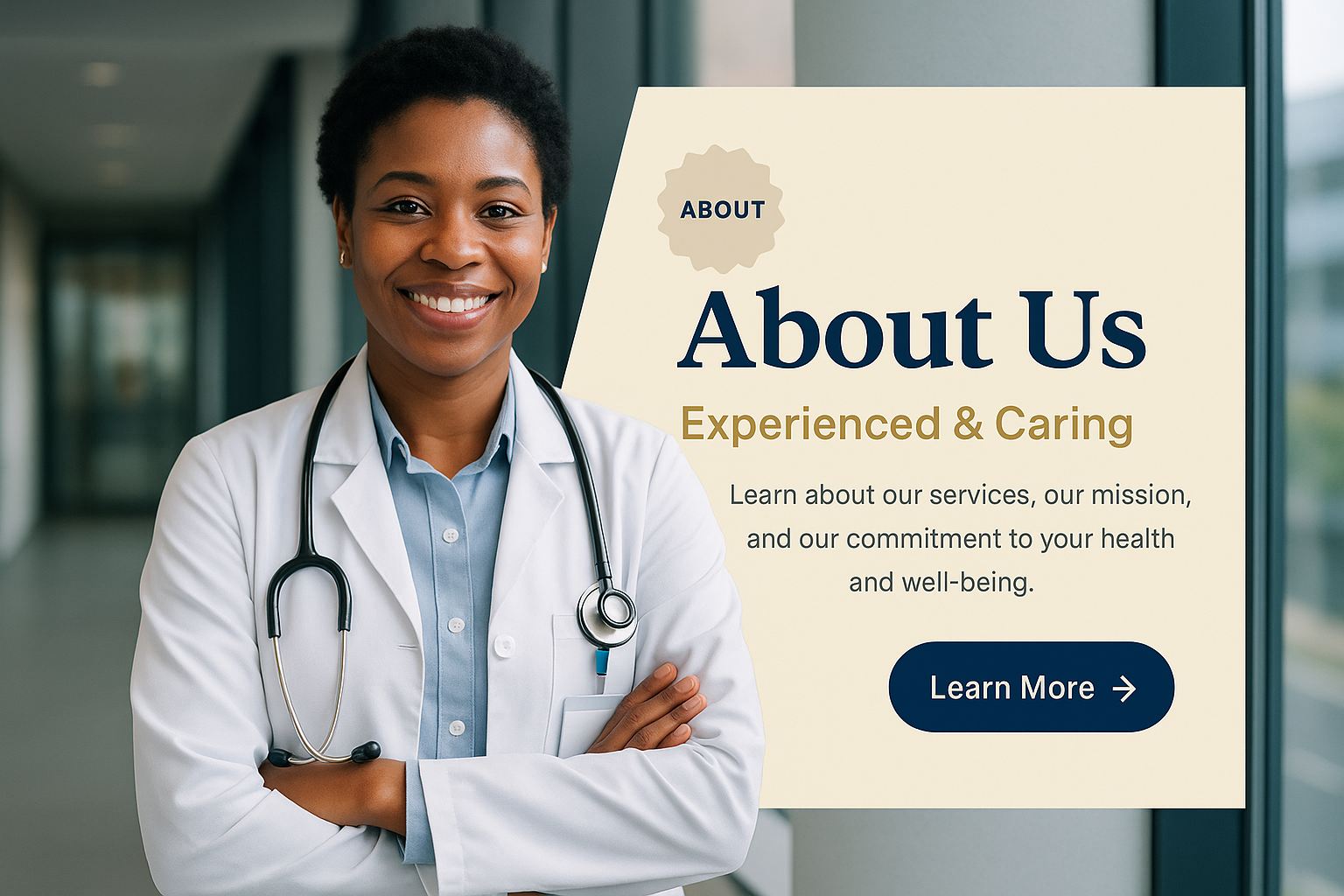 Smiling Female Doctor Portrait with Engaging Design Elements