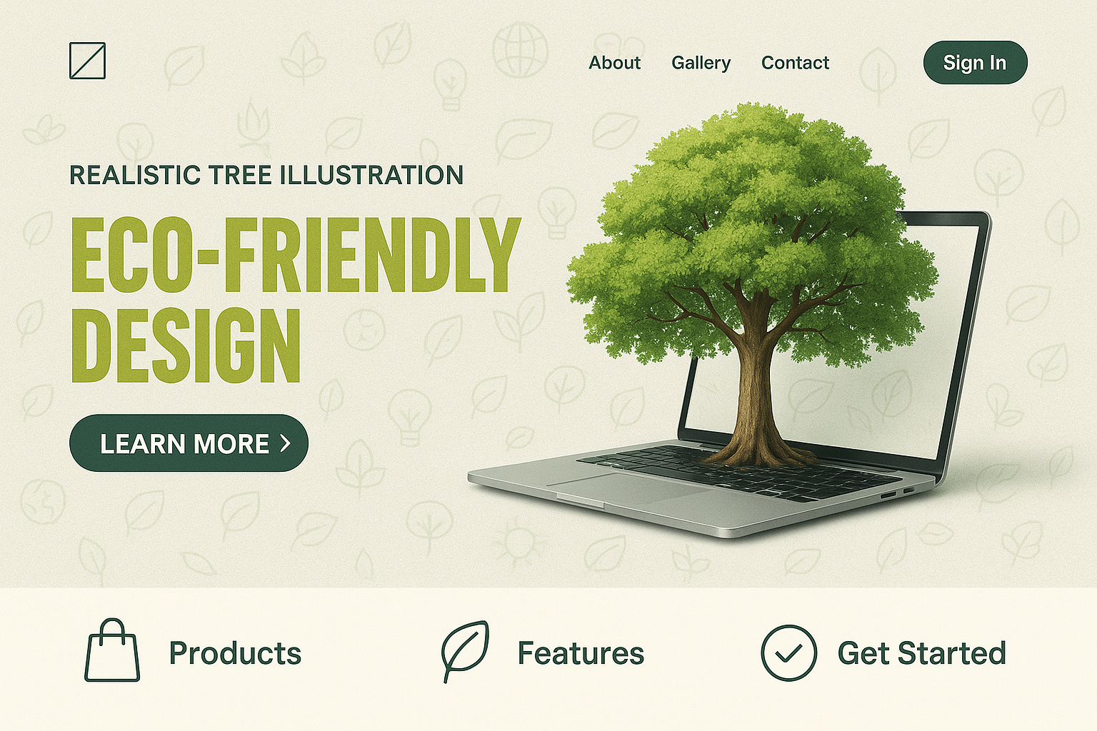 Eco-Friendly Design with Realistic Tree Illustration on Laptop