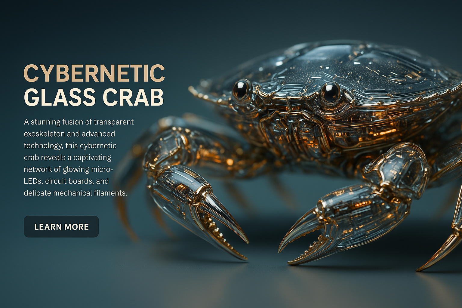 Hyperrealistic Cybernetic Glass Crab with Glowing Details