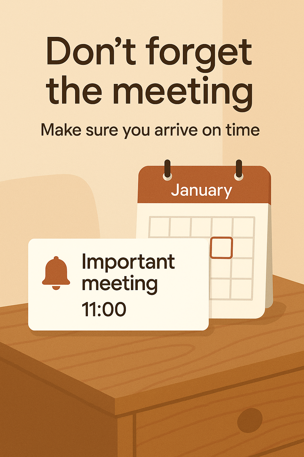 Colorful 3D Meeting Reminder Graphic with Alert Elements