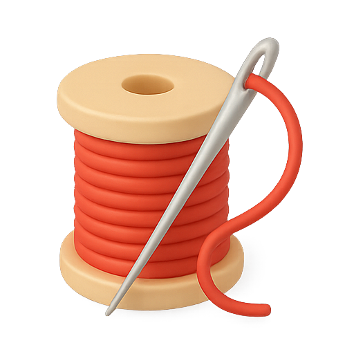 /Collection: /by davooda/Type: PNG/A detailed digital illustration featuring a spool of red thread and a needle, ideal for crafting or sewing-related content. The design is clean and visually appealing, making it suitable for instructional materials or creative projects.