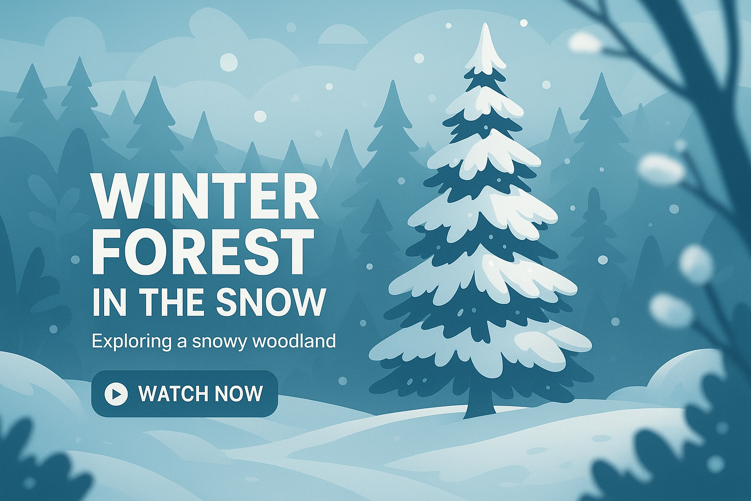 /Collection: /by davooda/Type: PNG/A visually appealing graphic depicting a snowy woodland scene, designed to invite viewers to explore a winter forest. The soft color palette and stylized trees create a serene atmosphere, suitable for nature-themed content.