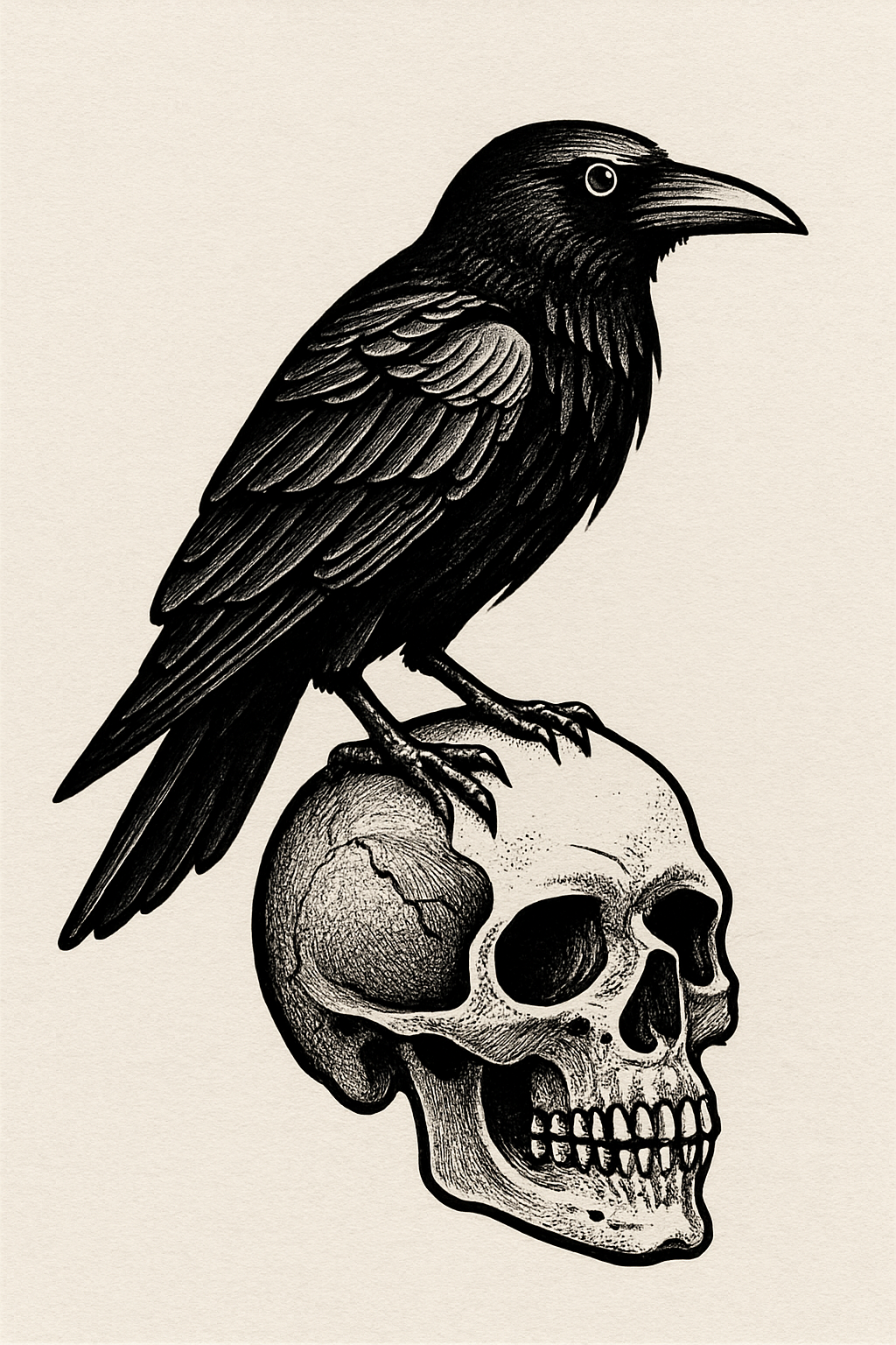 Intricate Raven on Skull Illustration for Dark Art Lovers
