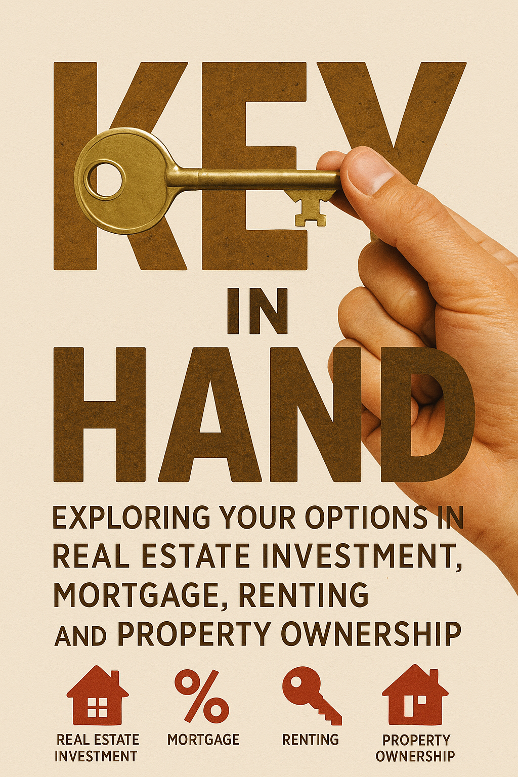 Informative graphic illustrating real estate investment concepts with a hand holding a key, designed for educational purposes targeting prospective investors.