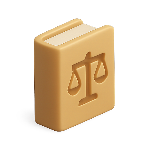 3D-rendered icon representing a book with scales of justice, ideal for legal-themed applications, websites, or educational materials.