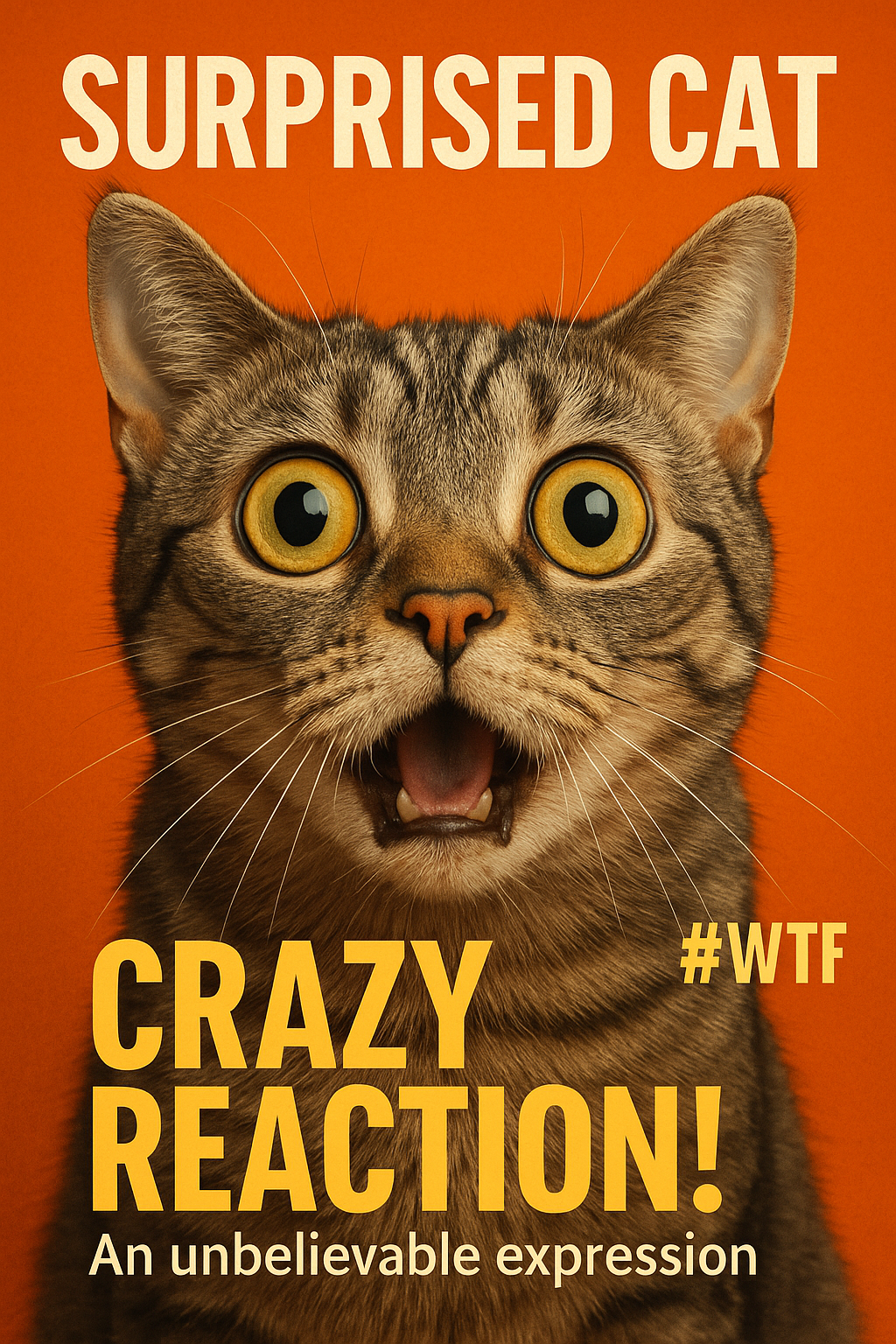 Surprised Cat Image with Bold Typography