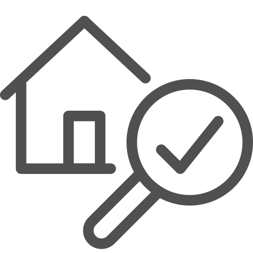 outline simple icon: check, house, inspection, magnifying glass, quality