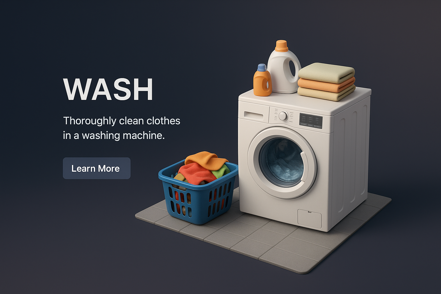 Realistic 3D Scene of a Washing Machine and Laundry Items