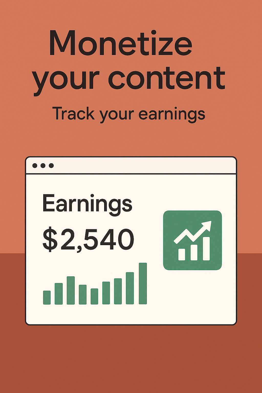 /Collection: /by davooda/Type: PNG/Informative graphic illustrating content monetization with a focus on tracking earnings using bar graphs and digital interfaces, suitable for finance or content creation platforms.