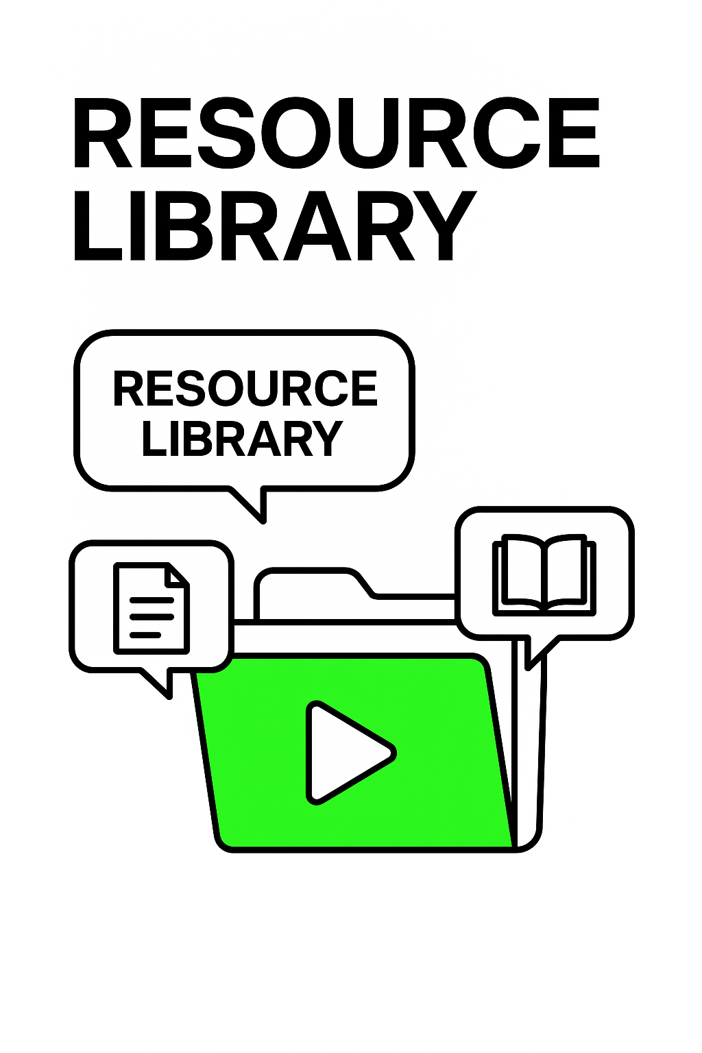 Minimalist graphic representing a resource library with icons for documents and books, ideal for educational or informational platforms.