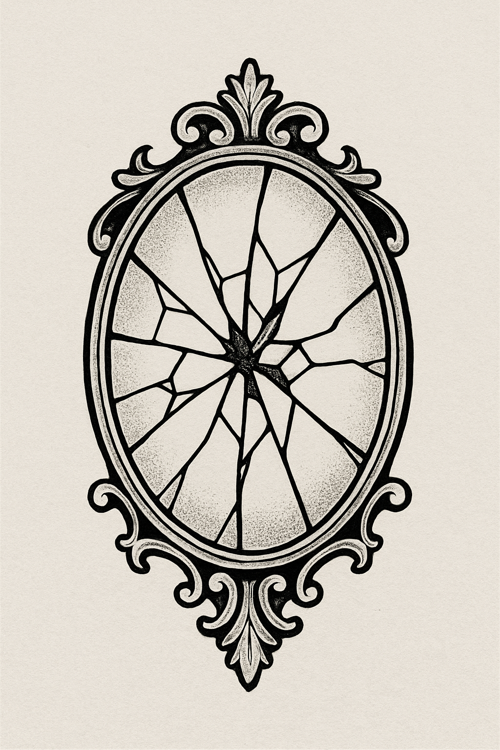 Illustration of a Cracked Antique Mirror with Detailed Frame