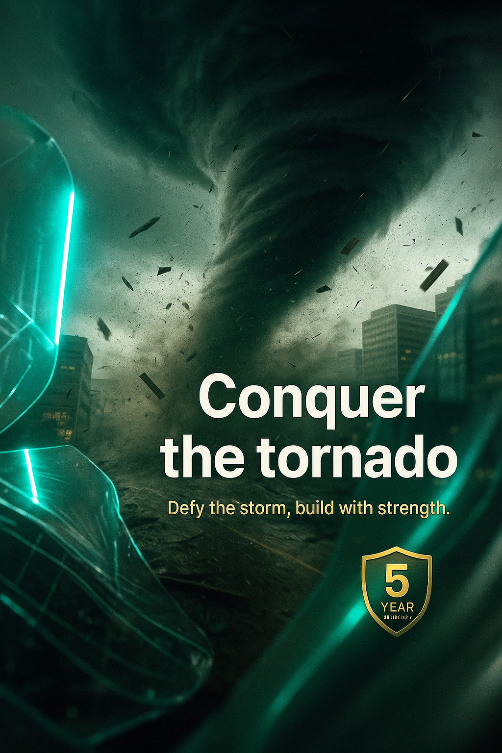 /Collection: /by davooda/Type: PNG/A dramatic scene depicting a powerful tornado amidst urban buildings, enhanced with neon accents. The text highlights resilience and strength, creating a captivating visual.