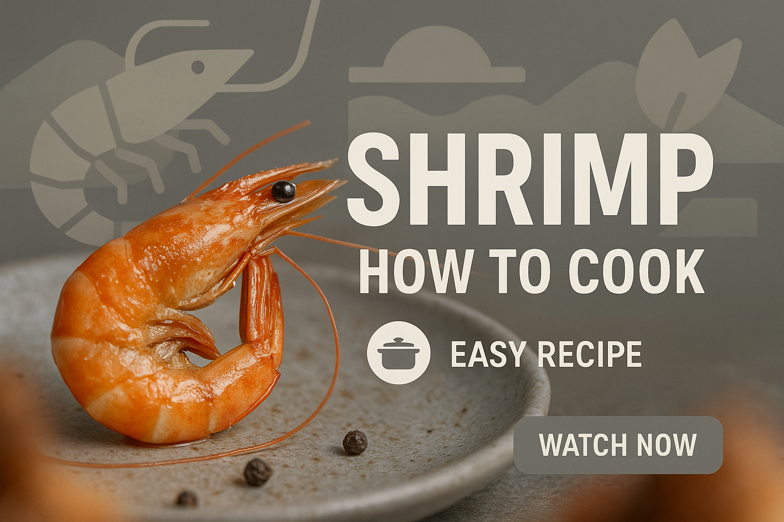 Engaging cooking guide image featuring shrimp with a modern design and overlay text, ideal for culinary blogs or recipe sharing on social media.