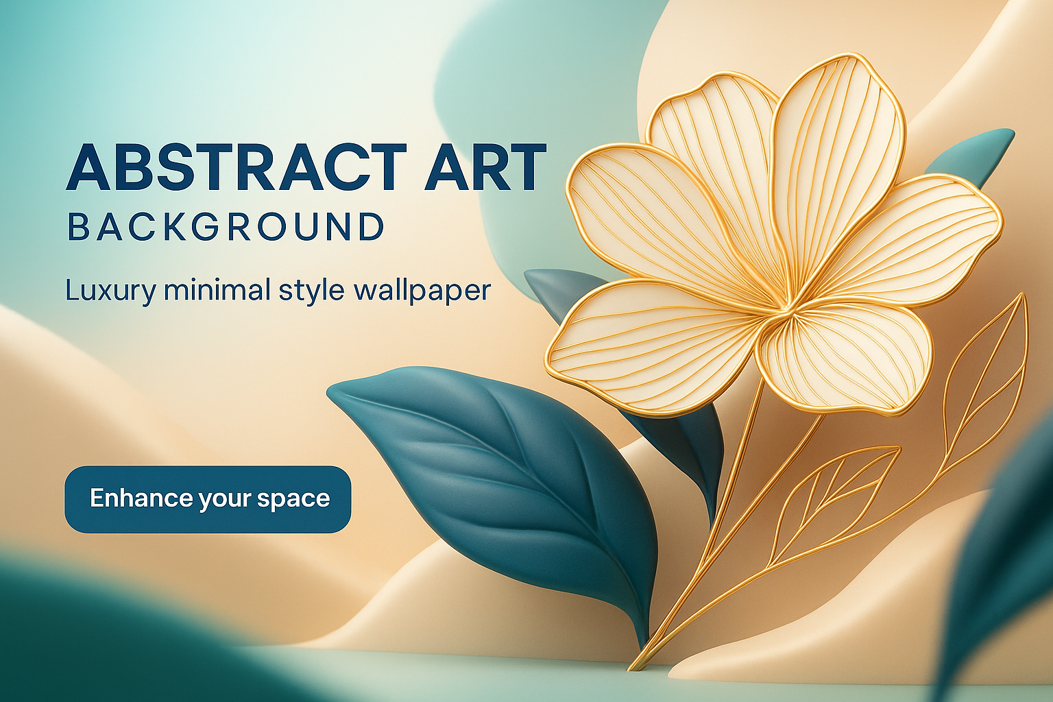 /Collection: /by davooda/Type: PNG/A sophisticated abstract art background featuring a golden line art flower and elegant botanical leaves. The composition includes smooth gradients and a luxurious minimal style, ideal for banners and posters.