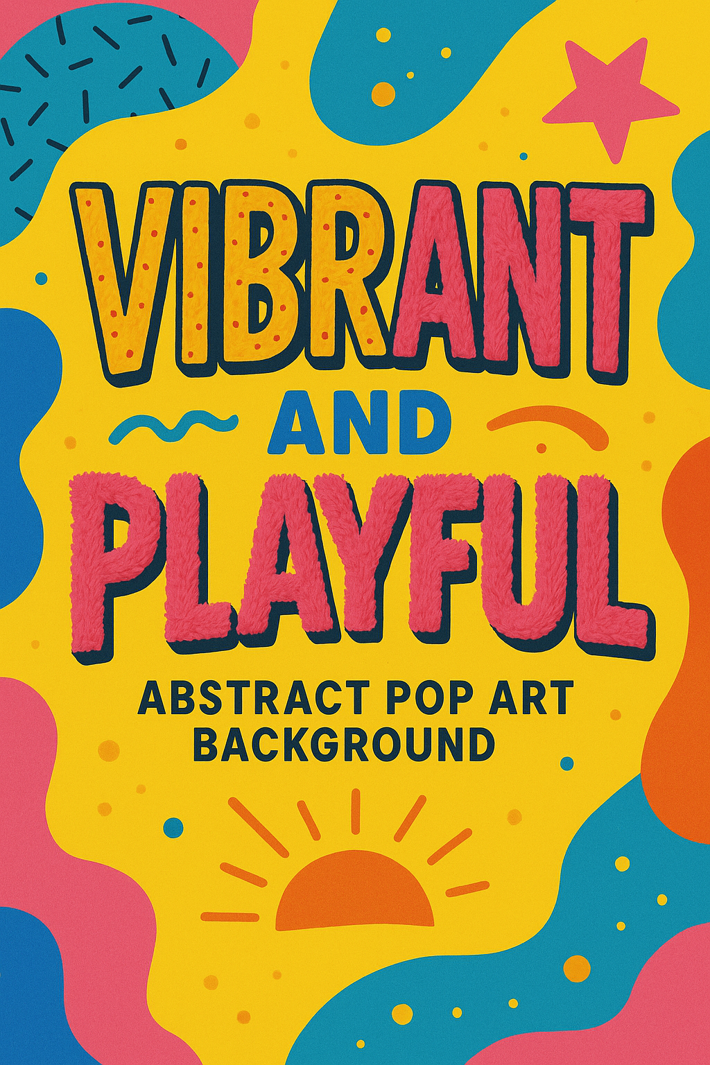 Colorful abstract pop art background featuring bold typography and playful design elements, ideal for creative projects and social media use.