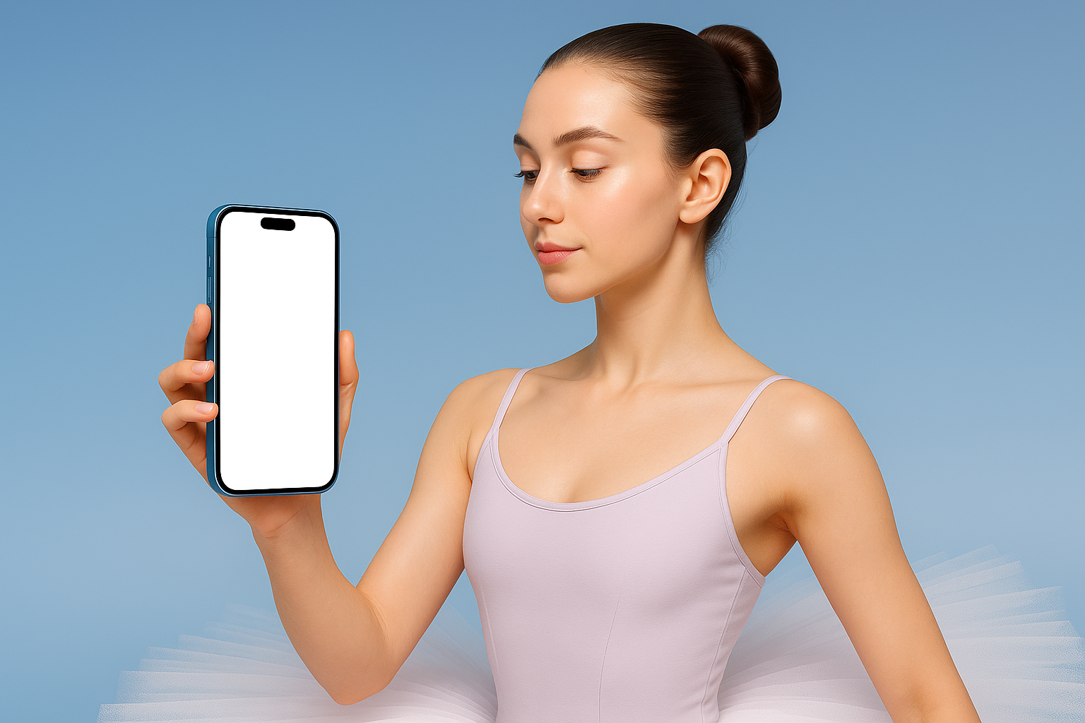 Elegant Ballerina Holding a Phone in a Graceful Pose