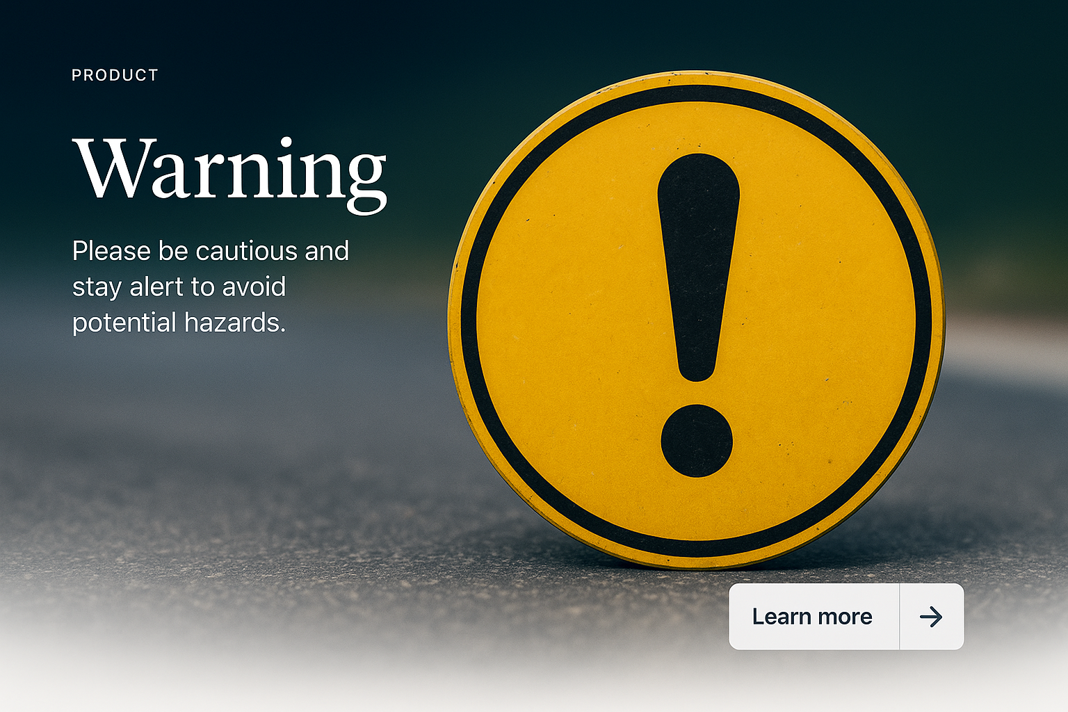 /Collection: /by davooda/Type: PNG/A visually striking warning circle featuring a bold exclamation mark. Accompanied by a cautionary message urging alertness to hazards, with a clear action button.