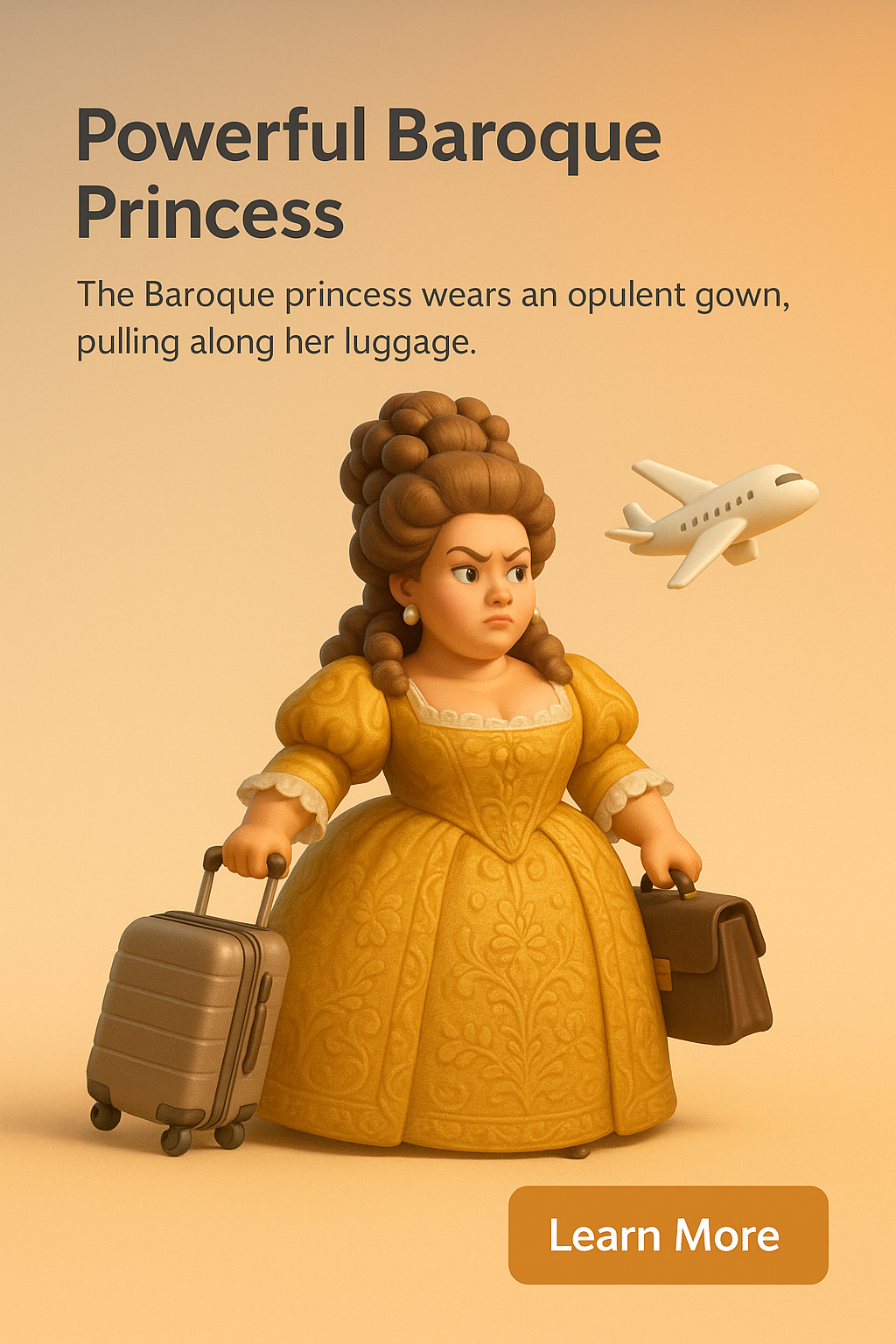 3D Illustration of a Powerful Baroque Princess on Business Travel