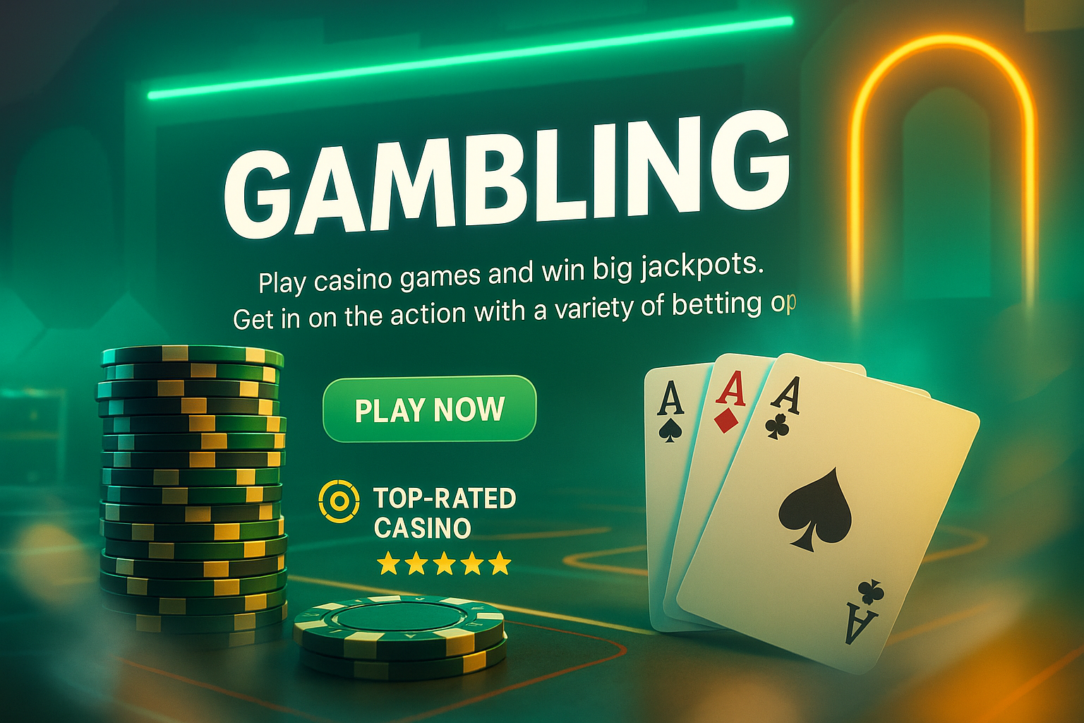 Casino Promotion Banner Featuring Gambling Theme and Game Elements
