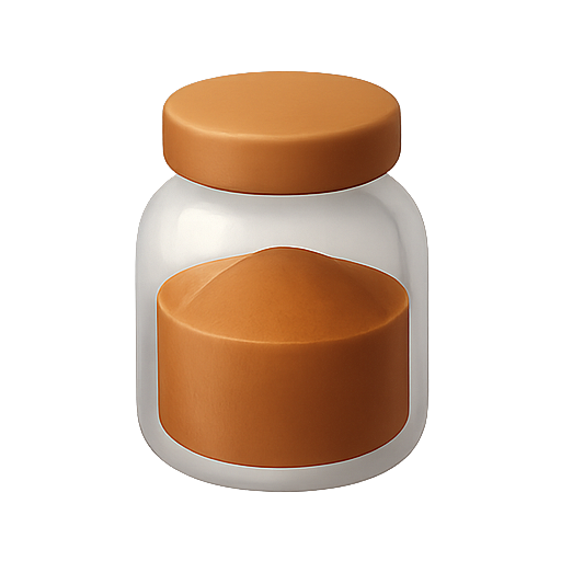 A minimalist representation of a glass jar featuring a brown lid and a solid substance inside, ideal for product design or branding concepts.