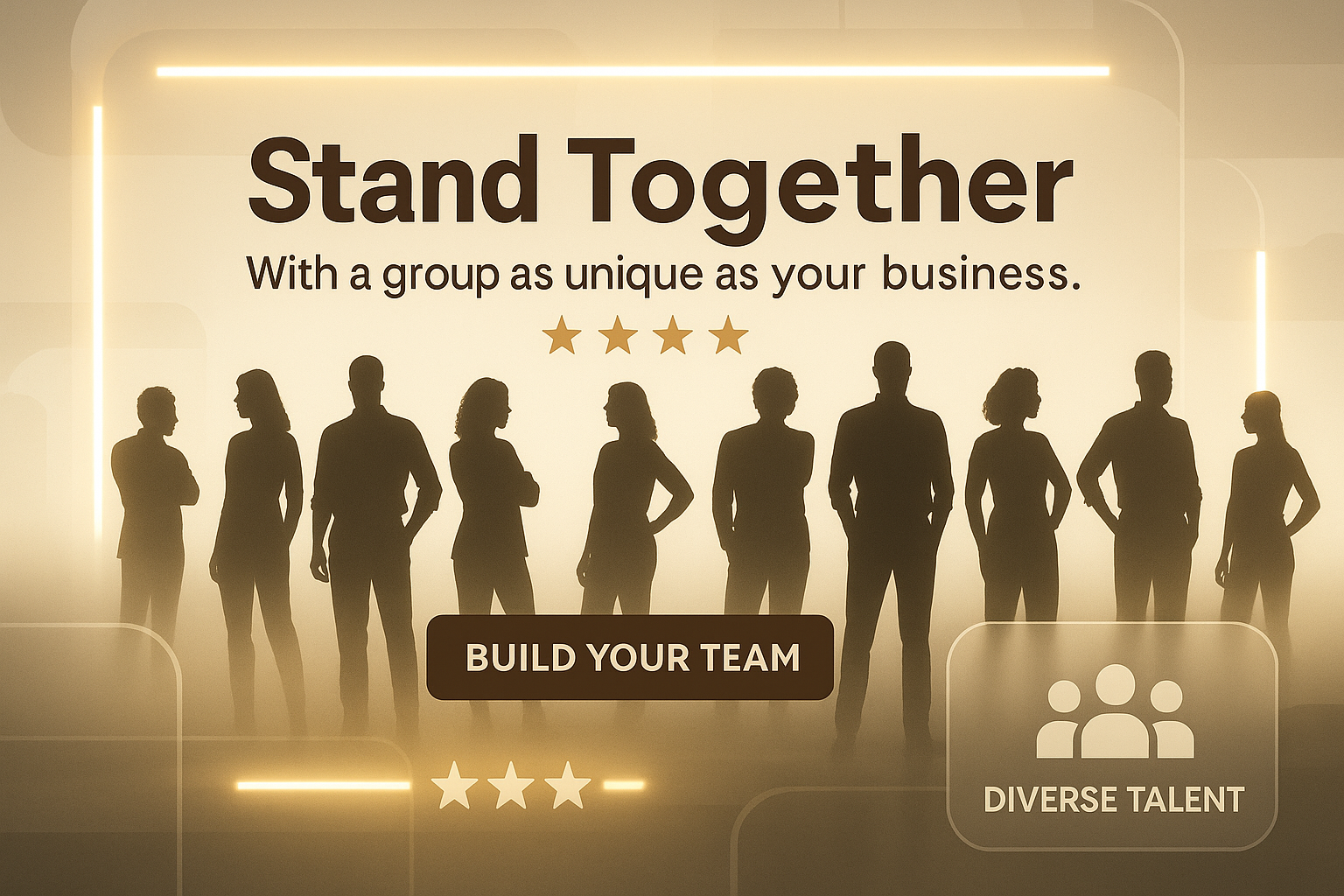 /Collection: /by davooda/Type: PNG/Engaging promotional graphic showcasing diverse silhouettes representing teamwork and inclusivity, designed for team-building initiatives. Ideal for HR marketing materials.