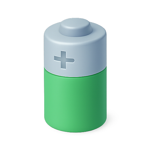 /Collection: /by davooda/Type: PNG/A modern 3D illustration of a battery icon featuring a green lower section and a light blue cap. This design is perfect for technology and energy-related contexts.