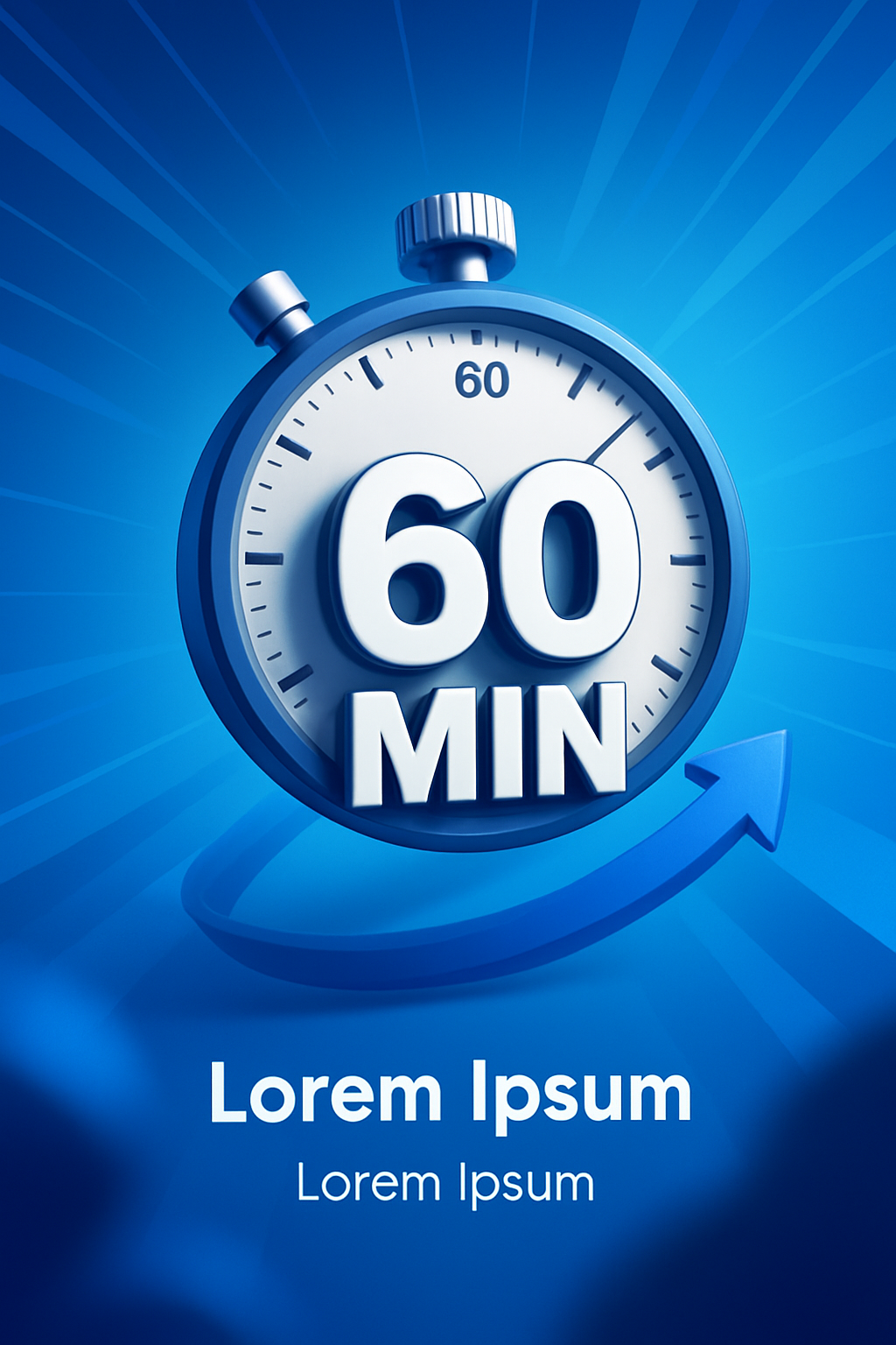 This image features a stylized timer set to 60 minutes, set against a vibrant blue background. Ideal for time management themes in digital content.