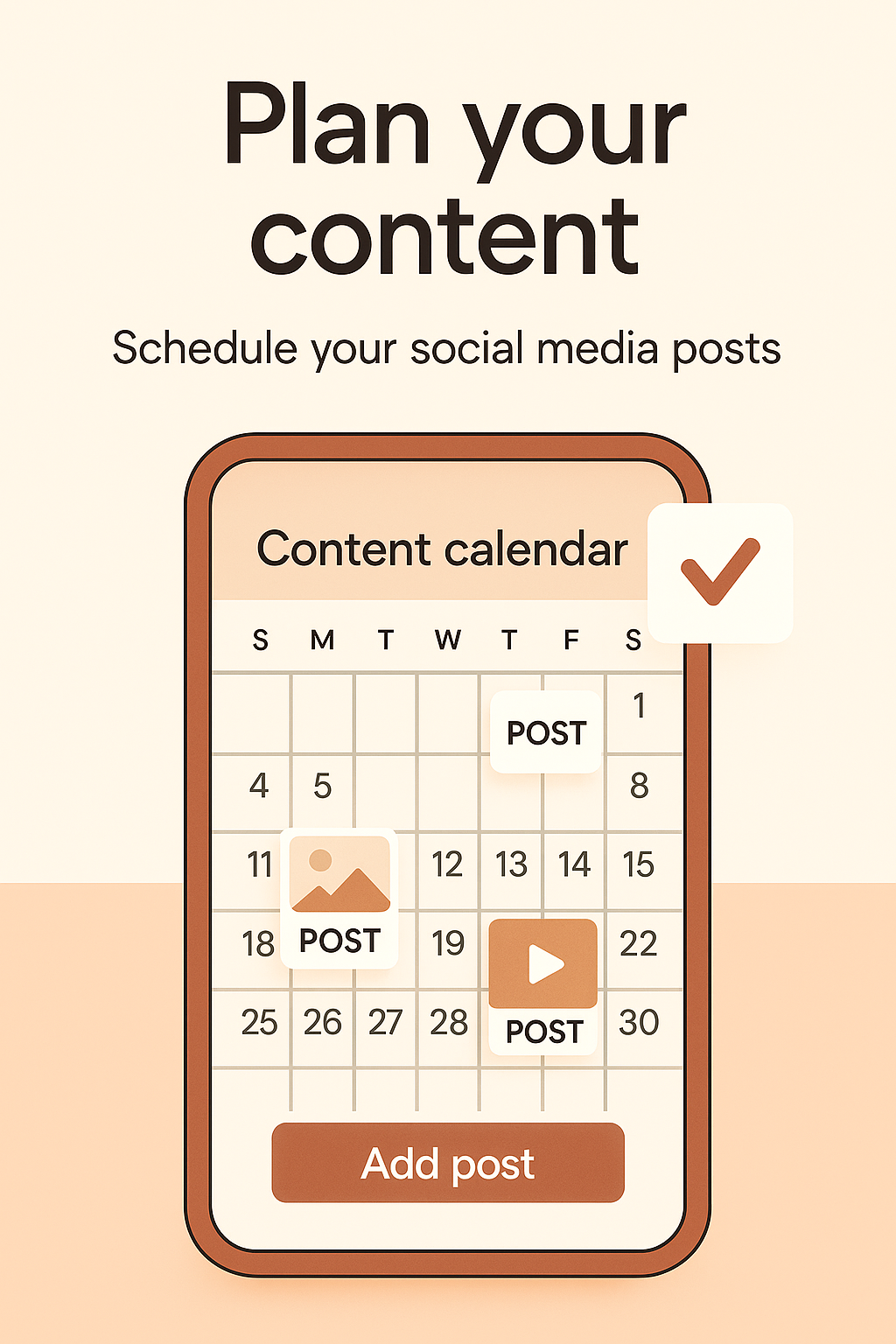 A modern digital graphic showcasing a content calendar for social media posts, featuring a clean design with pastel colors and simple icons, ideal for marketing or planning tools.
