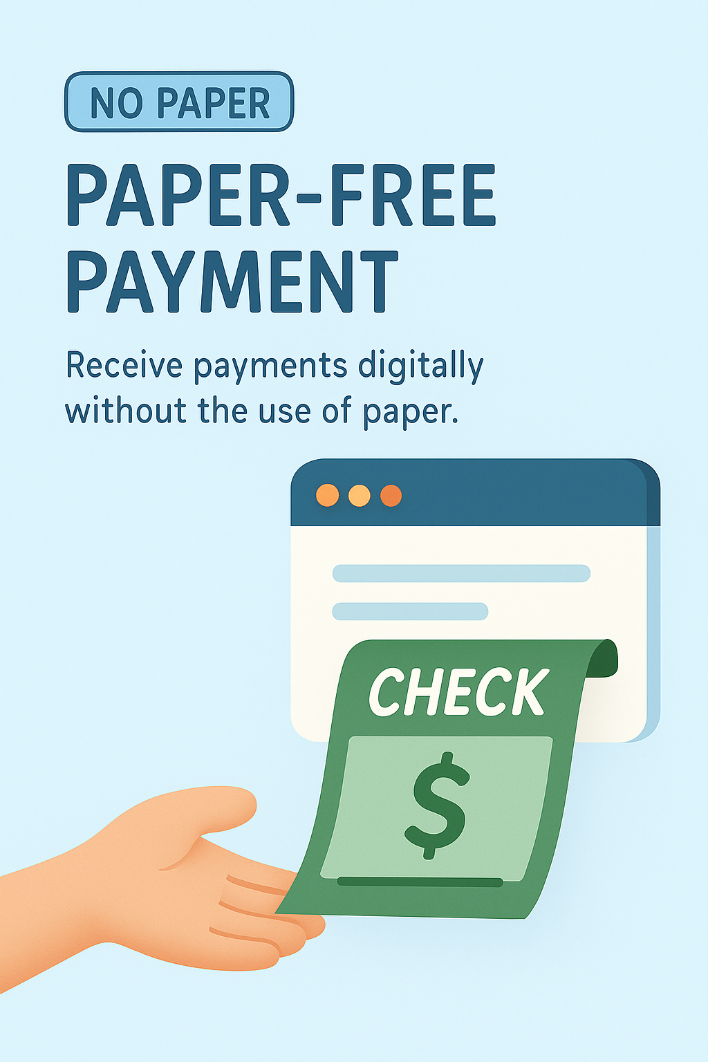 /Collection: /by davooda/Type: PNG/An engaging illustration depicting a paper-free payment concept, featuring a hand presenting a digital check. Ideal for promoting digital transaction solutions.