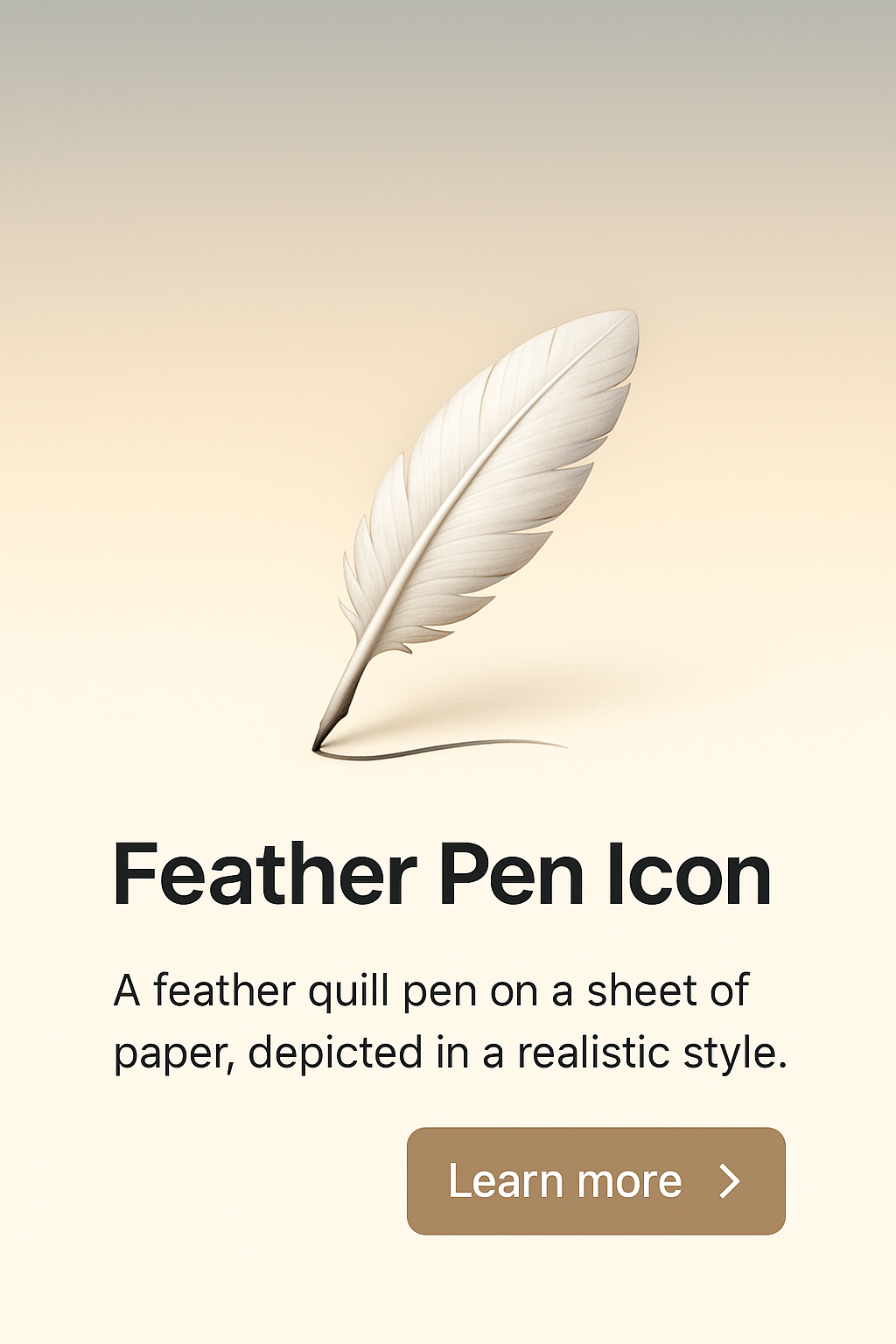 /Collection: /by davooda/Type: PNG/A detailed illustration of a feather quill pen against a smooth gradient background. The icon features a clear, readable label and action button, designed for visual clarity.