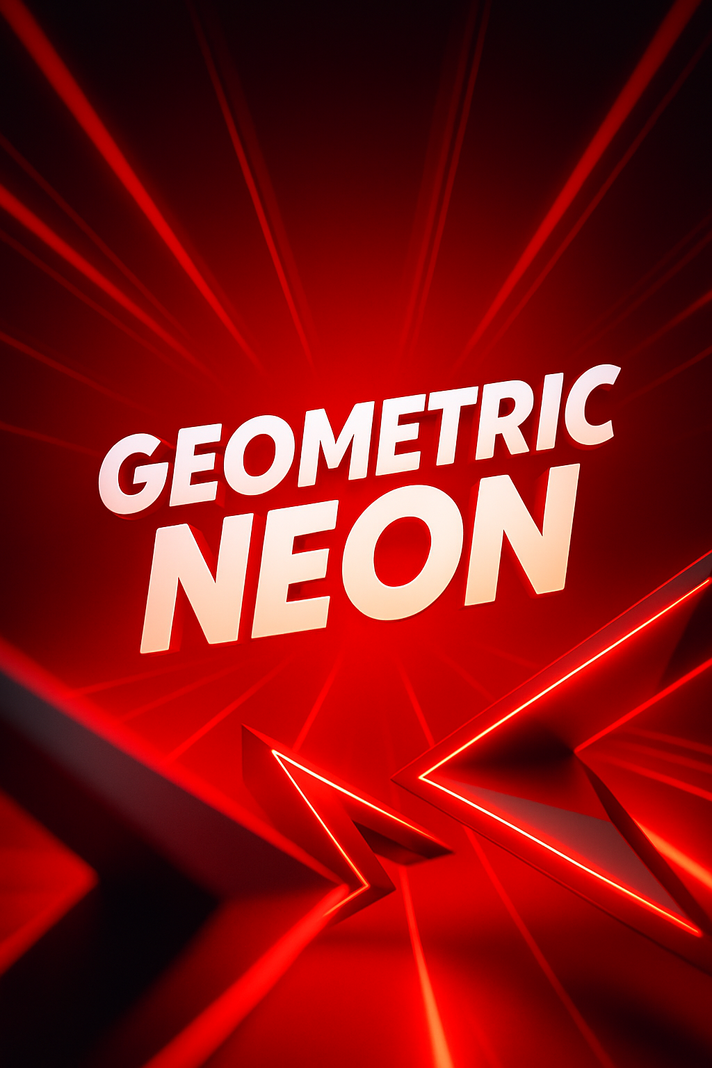 /Collection: /by davooda/Type: PNG/A striking neon red background featuring dynamic geometric shapes and lines that radiate from the center, creating a sense of movement and depth. The title 'GEOMETRIC NEON' is prominently displayed in bold, engaging typography.