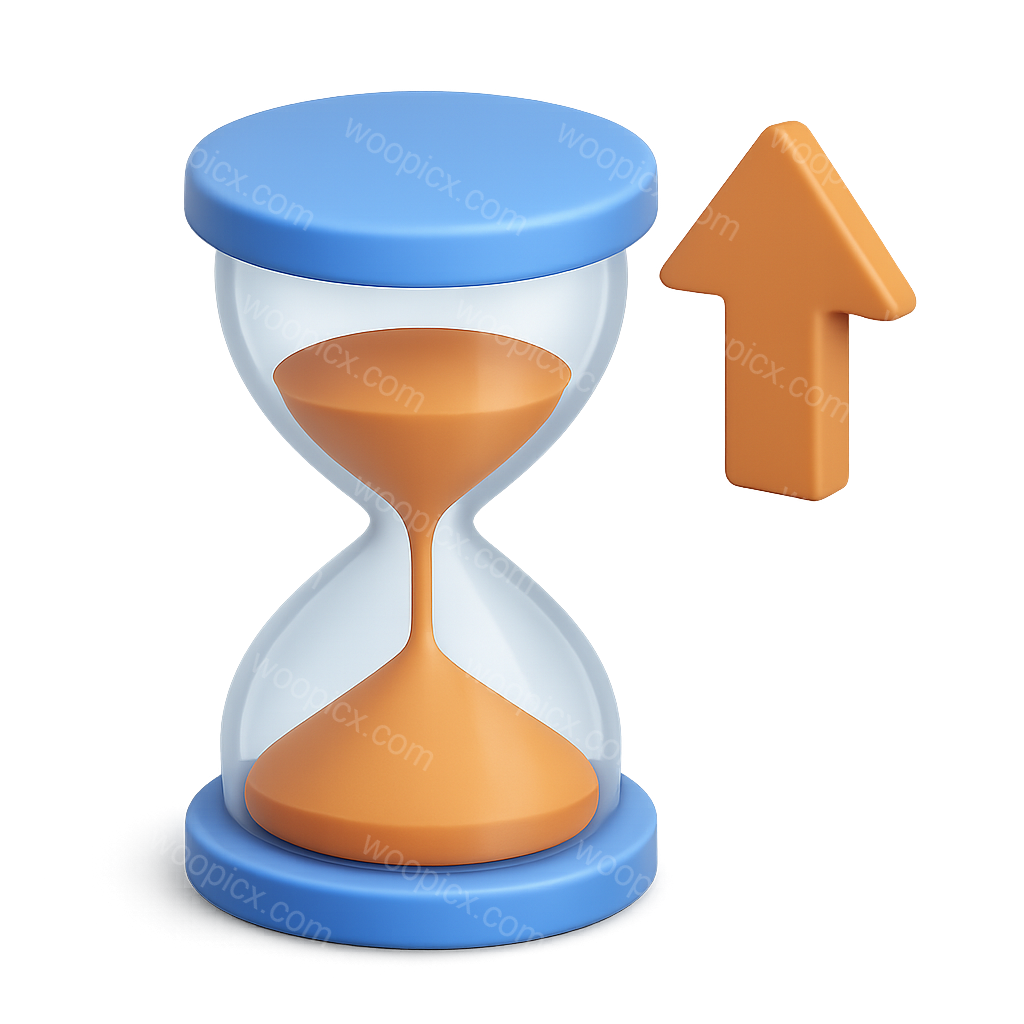 /Premium/Collection: /by davooda/Type: PNG/A sleek 3D icon featuring an hourglass with a transparent body and an orange sand core, accompanied by a vibrant upward arrow, all set against a smooth gradient background.