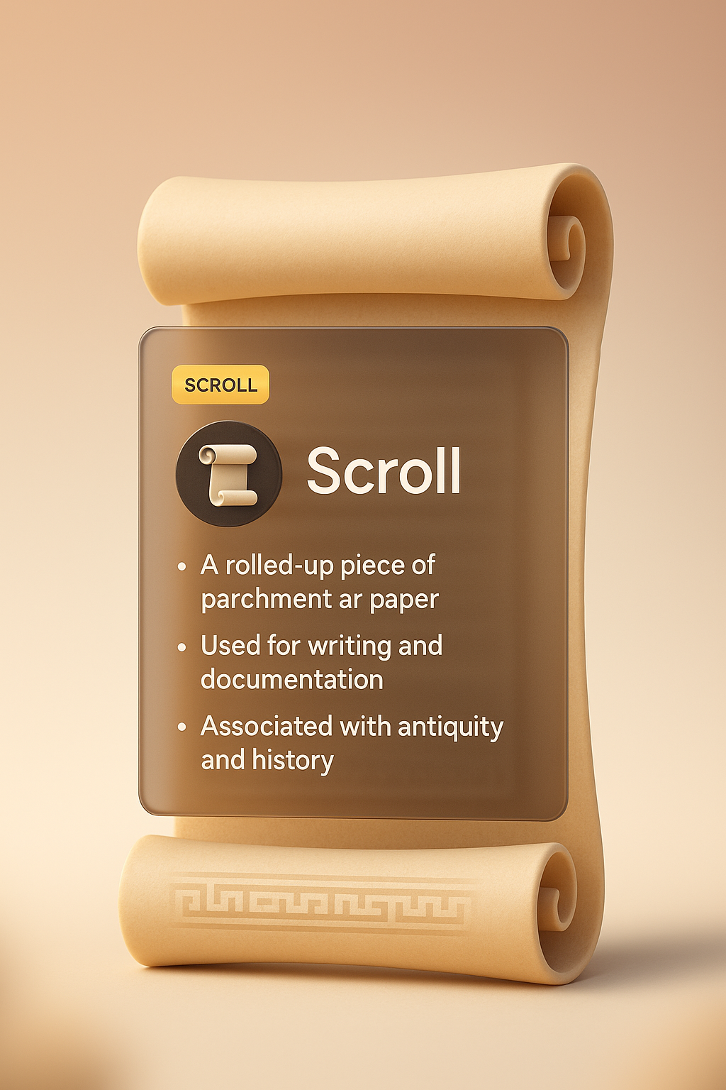 /Collection: /by davooda/Type: PNG/A minimalist 3D design showcasing a scroll with a smooth gradient background. The scroll features an icon and a text block that highlight its historical significance.