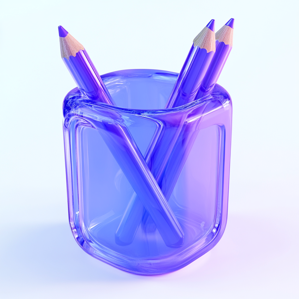 A modern and sleek pencil holder made of translucent purple material, featuring colored pencils arranged inside. Ideal for office or creative workspace decor.