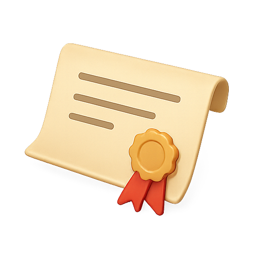 A stylized digital illustration of a certificate featuring a golden seal and red ribbon, ideal for educational or achievement contexts.