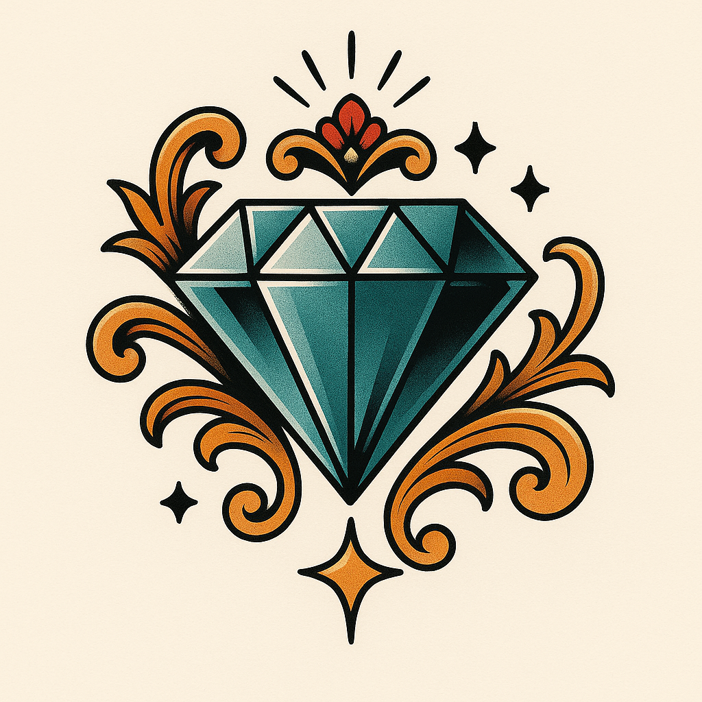 Stylized Tattoo Design Featuring a Diamond and Roses
