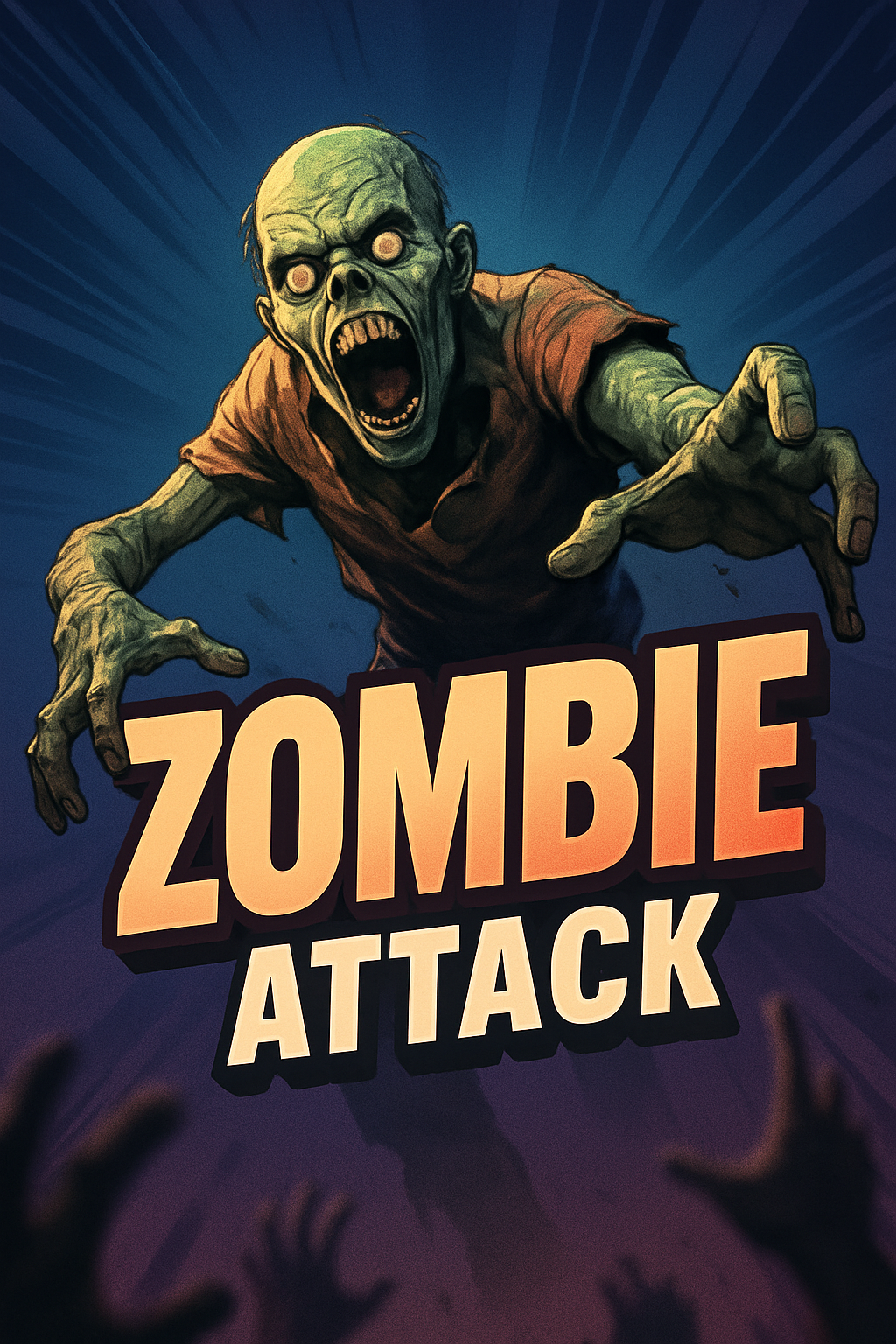 A vivid illustration of a zombie reaching out, surrounded by hands. The title 'ZOMBIE ATTACK' is prominently displayed in a bold font, emphasizing the action.