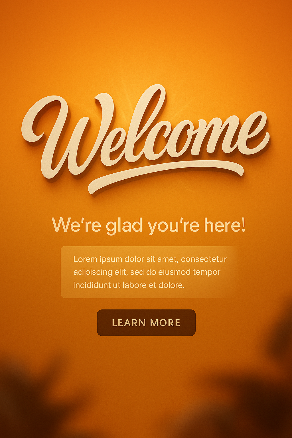 /Collection: /by davooda/Type: PNG/This is a social media post or banner with a warm, inviting design. It features a friendly welcome message, ideal for engaging users and encouraging them to learn more.