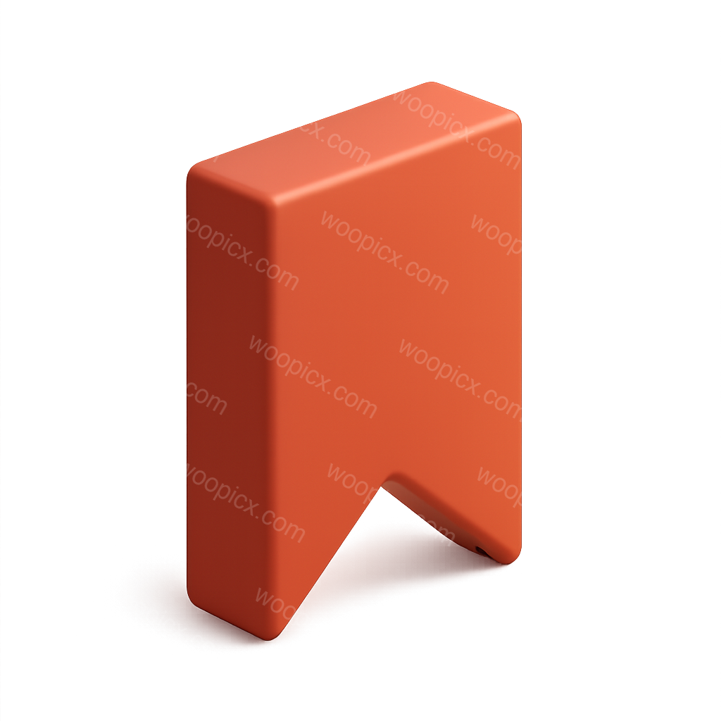 A vibrant 3D bookmark icon depicted in an isometric view. The design features a smooth, rounded shape with a sleek orange color, set against a soft gradient background.
