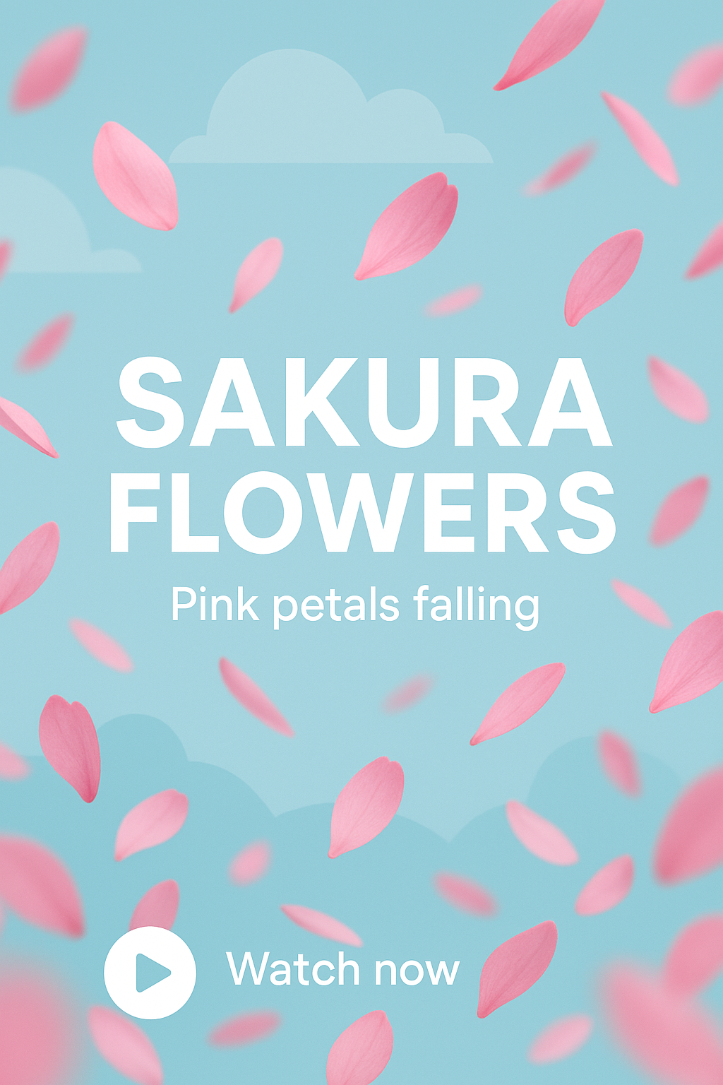 Beautifully designed graphic showcasing falling pink sakura petals against a soft blue background. Ideal for spring-themed promotions or nature-related content.