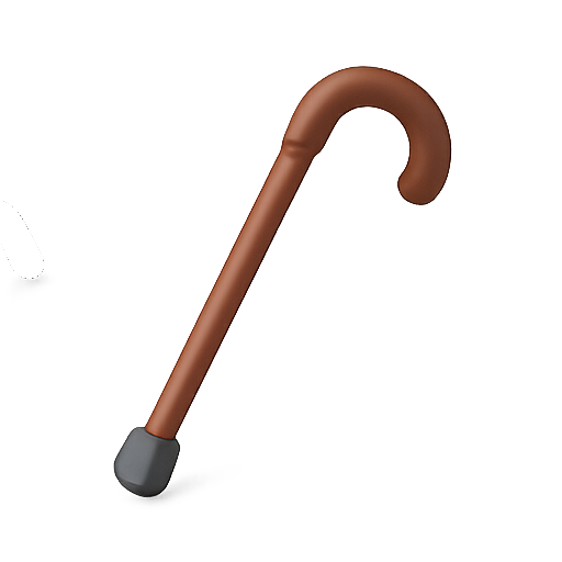 A minimalist, 3D-style illustration of a walking cane with a curved handle and a textured end. Ideal for accessibility themes or healthcare-related content.