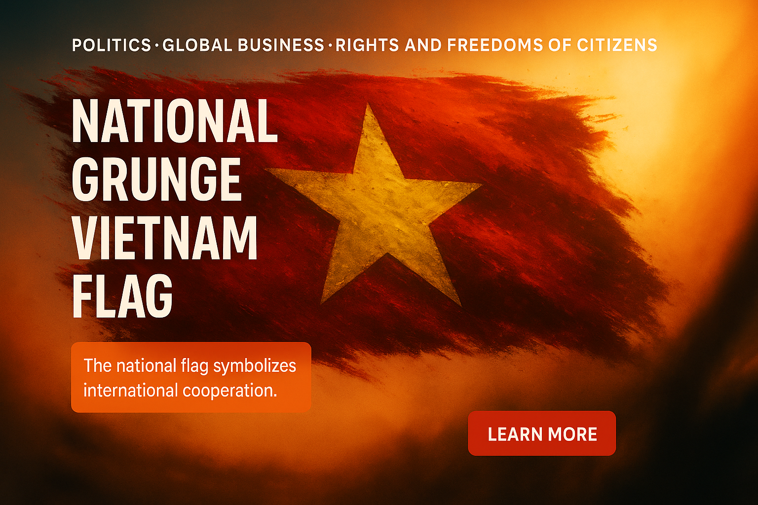 This image features a grunge-style representation of the Vietnam flag, emphasizing themes of politics and international cooperation. It's suitable for social media or informational graphics.