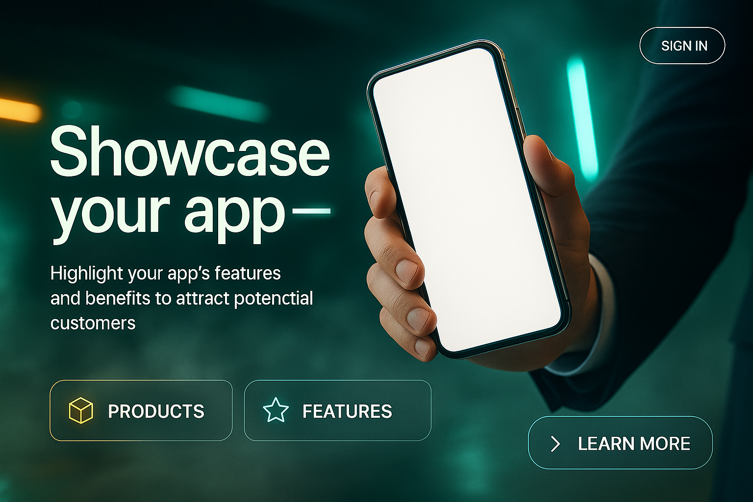 Futuristic Landing Page Featuring a Smartphone in Use