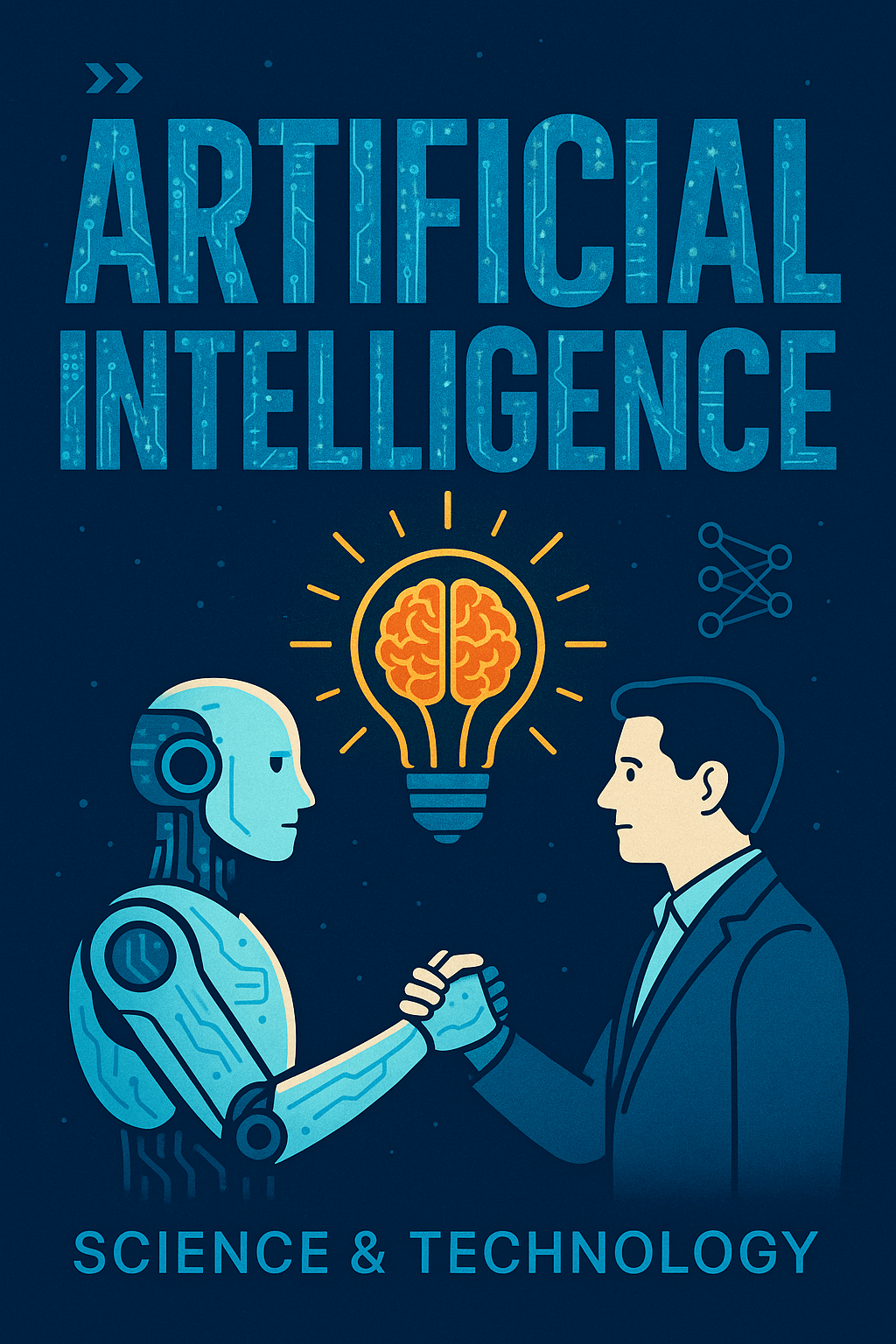 /Collection: /by davooda/Type: PNG/Colorful illustration depicting a robot and a human in a handshake, symbolizing collaboration in artificial intelligence. Ideal for educational and tech-related content.