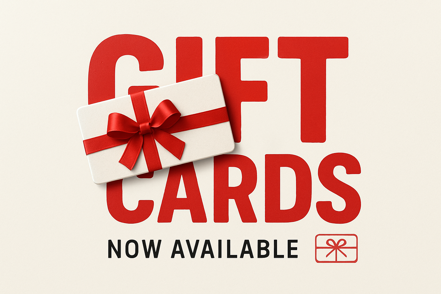 Vibrant promotional image showcasing gift cards with a large text overlay. Ideal for retail marketing campaigns and social media promotions.