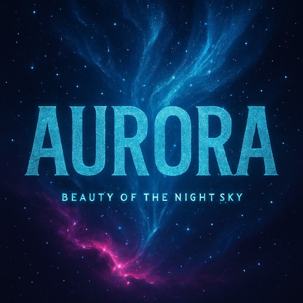 Visually striking graphic featuring the word 'Aurora' set against a cosmic background, perfect for promoting themes of nature and beauty in the night sky.