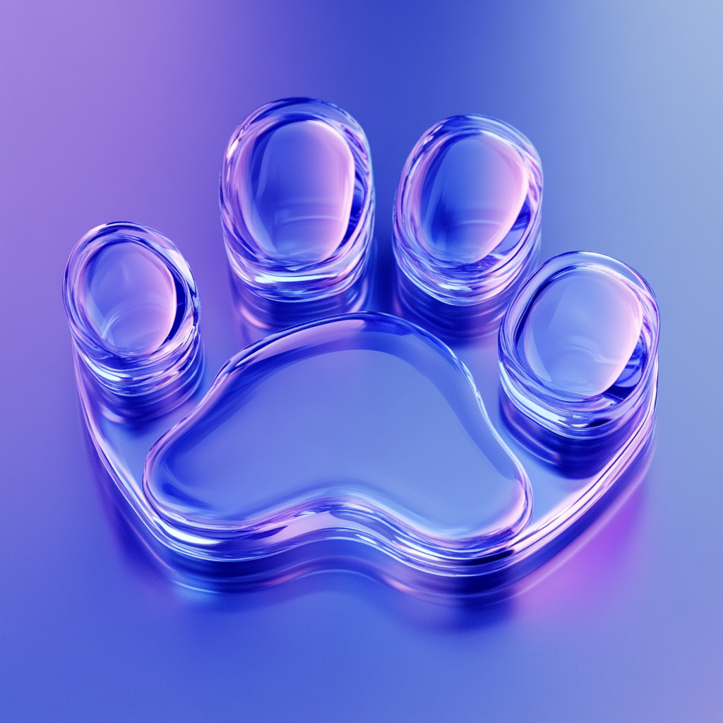 A sleek, stylized representation of a pet paw print rendered in a glossy glass-like effect, suitable for pet-related branding or digital design.