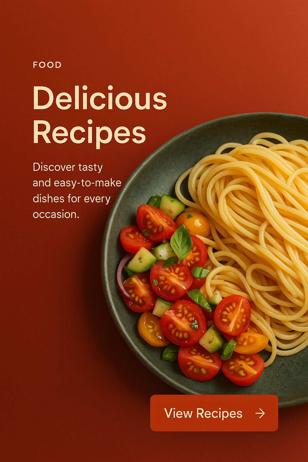 /Collection: /by davooda/Type: PNG/A minimalist web page design showcasing a plate of pasta and fresh vegetables. The layout includes a small label, a catchy title, and a call-to-action button.